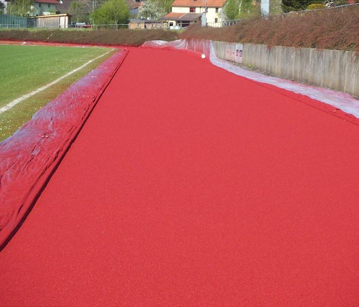 In Teilbereichen der Sportflächen wurden schadhafte Stellen rausgeschnitten und vom Asphaltbelag getrennt.